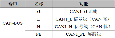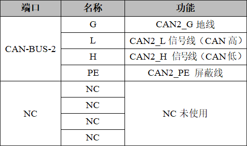 GCAN-GT-415模塊CAN1-bus接口由1個4 Pin接線端子引出,有2個獨立的CAN接口,其接口定義如表所示。