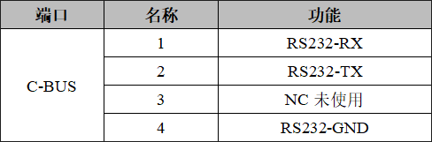 GCAN-GT-415模塊232串行接口由1個4 Pin接線端子引出,其接口定義如表所示。