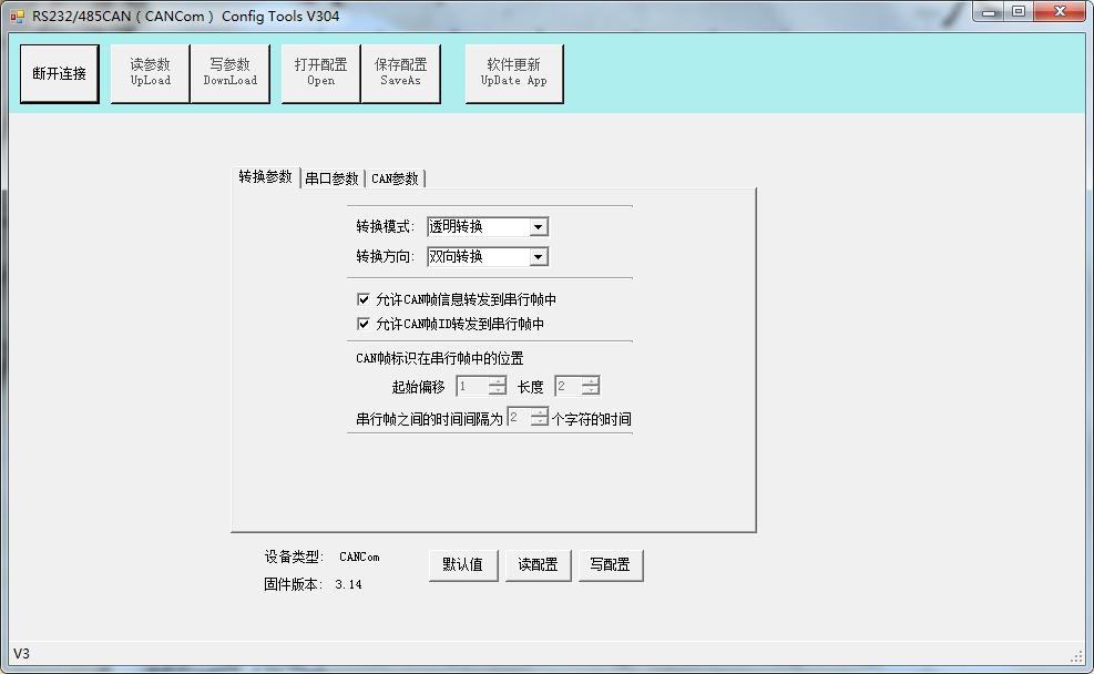 (11)使用RS232接口進入RS232CAN-Config軟件配置工作模式及所有參數(shù);