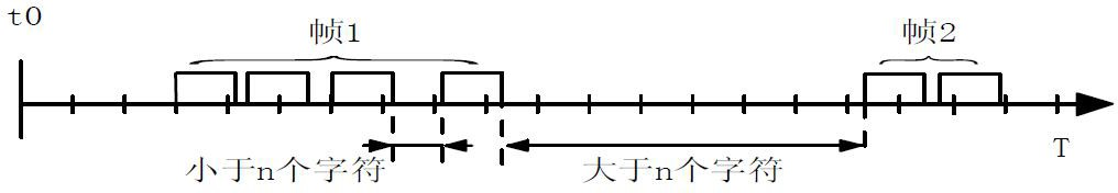 如果轉(zhuǎn)換器在接收到一個字符后小于等于n個字符的傳輸時間內(nèi)沒有字符再被接收到,轉(zhuǎn)換器就認為此幀傳輸結(jié)束,將該字符作為此幀的最后一個字符;n個字符時間之后的字符不屬于該幀,而是下一幀的內(nèi)容。幀格式如圖所示。串行幀時間格式(透明帶標識轉(zhuǎn)換)