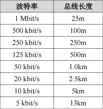 請注意:CAN總線電纜可以使用普通雙絞線、屏蔽雙絞線。理論最大通信距離主要取決于總線波特率,最大總線長度和波特率關(guān)系詳見下表。若通訊距離超過1km,應(yīng)保證線的截面積大于Φ1.0mm2,具體規(guī)格應(yīng)根據(jù)距離而定,常規(guī)是隨距離的加長而適當(dāng)加大。