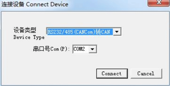 進(jìn)入軟件后,選擇連接到GCAN-207的串口號(hào),點(diǎn)擊“連接設(shè)備”即可建立連接。如用戶不知道串口號(hào),可通過進(jìn)入PC機(jī)的設(shè)備管理器中查看。點(diǎn)擊“Connect”后,界面彈出“讀取參數(shù)成功”,表明已讀出模塊當(dāng)前的配置情況。