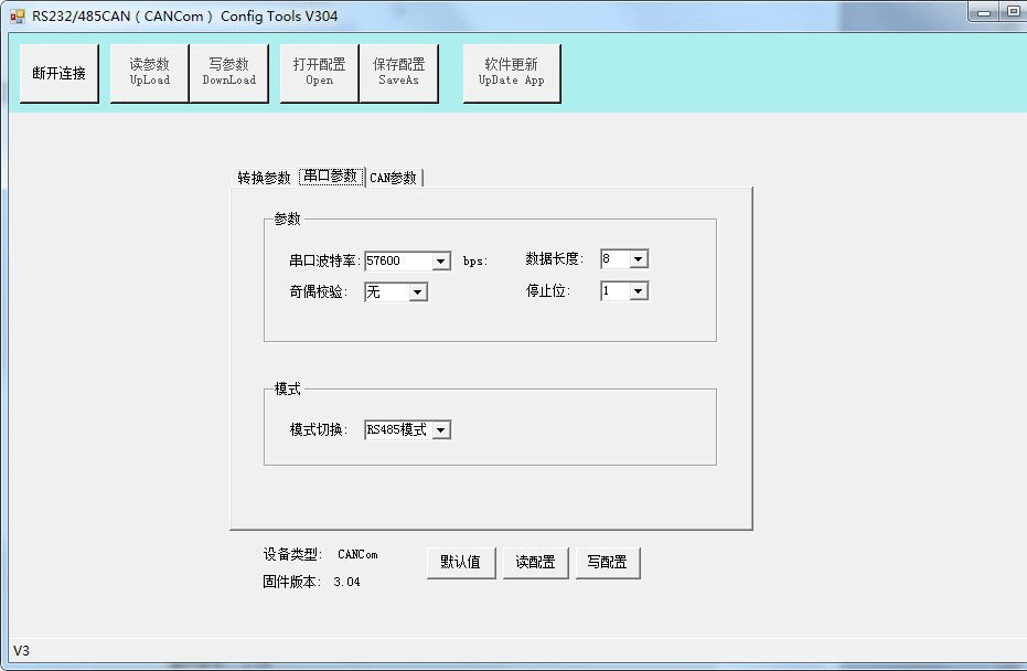 (12)使用RS232接口進(jìn)入CANCOM-Config-V304軟件配置工作模式及所有參數(shù);