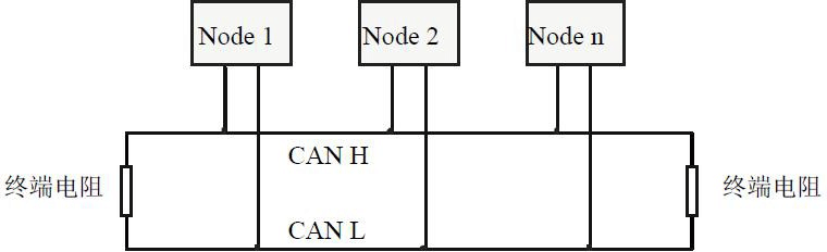 CAN總線網(wǎng)絡(luò)采用直線拓?fù)浣Y(jié)構(gòu),總線最遠(yuǎn)的2個(gè)終端需要安裝120Ω的終端電阻;如果節(jié)點(diǎn)數(shù)目大于2,中間節(jié)點(diǎn)不需要安裝120Ω的終端電阻。對(duì)于分支連接,其長(zhǎng)度不應(yīng)超過(guò)3米。CAN總線總線的連接見(jiàn)圖所示。CAN總線網(wǎng)絡(luò)的拓?fù)浣Y(jié)構(gòu)