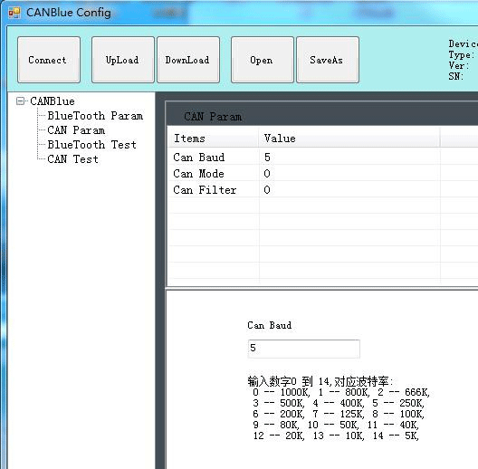 (8)使用CANBlue Config配置工作模式及參數(shù);
