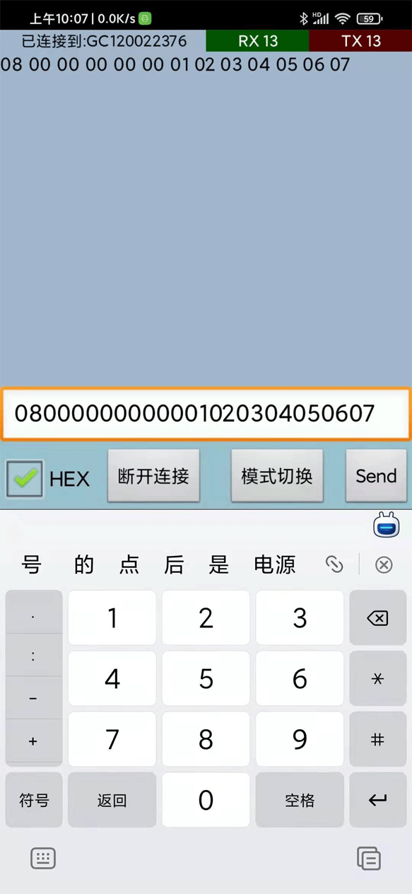 (3)使用藍(lán)牙串口助手發(fā)送數(shù)據(jù)