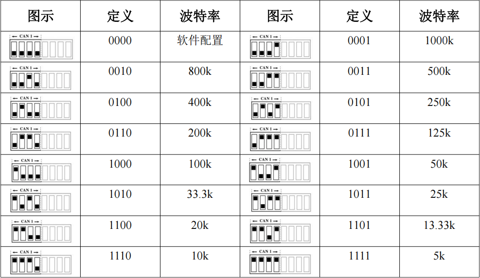2、通過撥碼開關(guān)配置CAN總線波特率