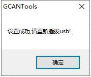 設(shè)置完成后,點(diǎn)擊寫設(shè)置,會(huì)出現(xiàn)如圖所示的“設(shè)置成功,請重新插拔usb!”結(jié)果。之后設(shè)備需要重新上電,配置才會(huì)生效。