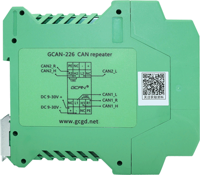 GCAN-226模塊集成兩路CAN總線,無需連接PC即可起到不同CAN網(wǎng)絡(luò)的中繼,使波特率不同的CAN網(wǎng)絡(luò)互相通信。