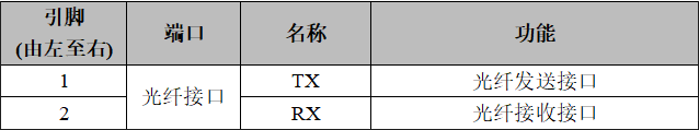 GCAN-208-S模塊光纖接口位置、接口定義如下面圖表所示。
