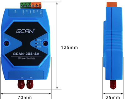 GCAN-208-S系列模塊支持點(diǎn)對點(diǎn)的連接方式,模塊兩端波特率一致,無需任何設(shè)置即可直接通信,通信波特率5Kbps~500Kbps,收到接入設(shè)備數(shù)據(jù)包按位直接轉(zhuǎn)發(fā),沒有任何緩存,只是在物理層轉(zhuǎn)換,電轉(zhuǎn)光,光轉(zhuǎn)電。