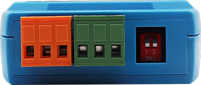 GCAN-208-S系列模塊CAN通道內(nèi)部已經(jīng)集成標(biāo)準(zhǔn)120Ω終端電阻,可通過撥碼開關(guān)選擇是否將電阻接入總線,R1、R2兩個開關(guān)控制同一個電阻,請一起對R1、R2進(jìn)行操作,撥到ON的位置即可將電阻啟用。