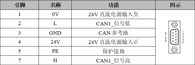 GCAN-402D模塊CAN-bus接口由2個(gè)DB9插拔式接線端子引出,左側(cè)DB9端子集成1路輔助電源接口(2路電源接口內(nèi)部已聯(lián)通,客戶可根據(jù)自己需求任意連接一路)。可以用于連接2個(gè)CAN-bus網(wǎng)絡(luò)或者CAN-bus接口的設(shè)備。其電源2和CAN-bus1接口定義如表所示。