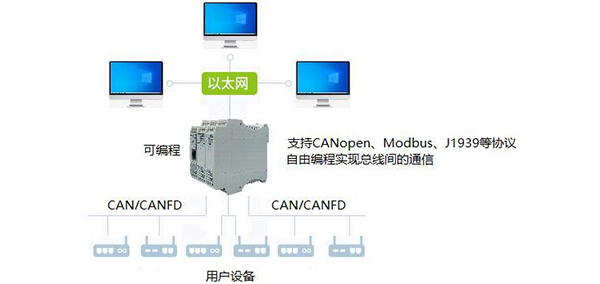 (9)可編程型號(hào)支持CANopen、Modbus、J1939等協(xié)議、支持CAN、CANFD自由口;