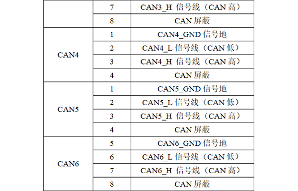 GCAN-GT-418-6系列模塊CAN/CANFD接口由6個(gè)4Pin接線端子引出,有6個(gè)獨(dú)立的CAN/CANFD接口,其接口定義如下表所示。