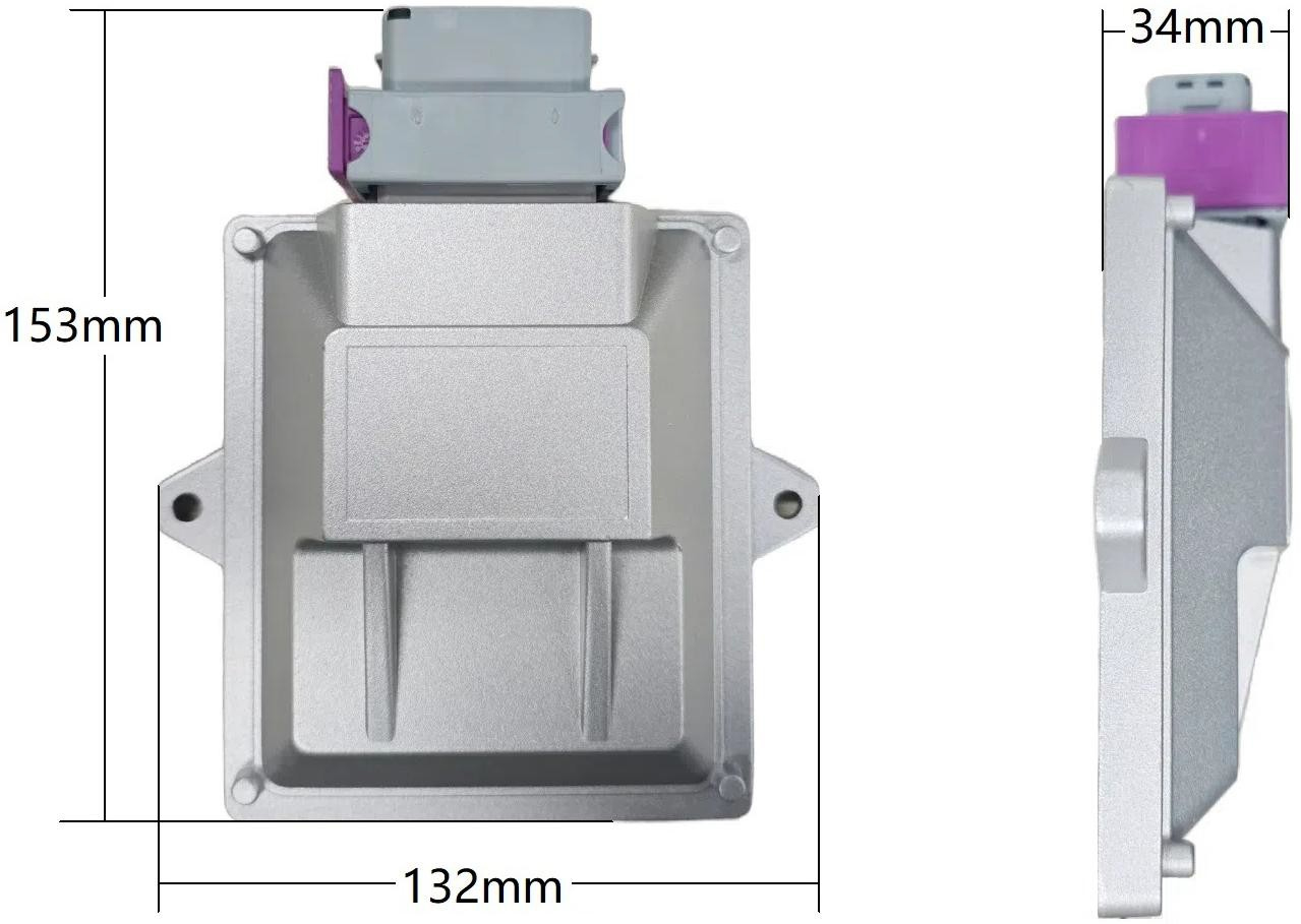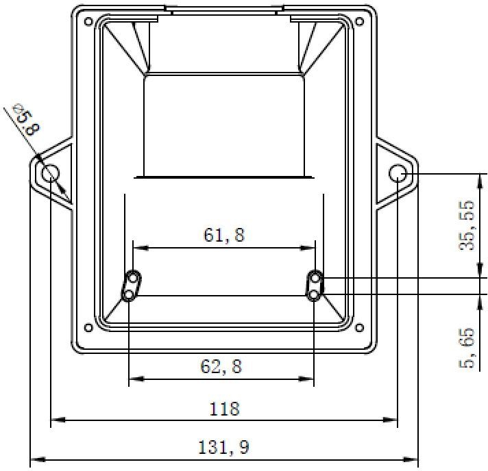 設(shè)備外形尺寸:(長(zhǎng),含接線端子)153mm*(寬)132mm*(高)34mm,其示意圖2.1及圖2.2所示,用戶可根據(jù)此尺寸設(shè)計(jì)GCAN-212-W的安裝固定孔。