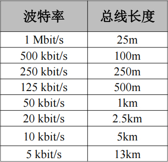 表3.1波特率與最大總線長(zhǎng)度參照表