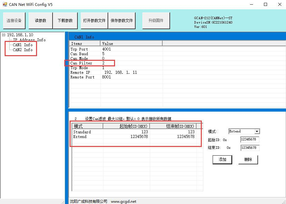 圖4.6廣成科技GCAN-212-W配置軟件設(shè)置濾波