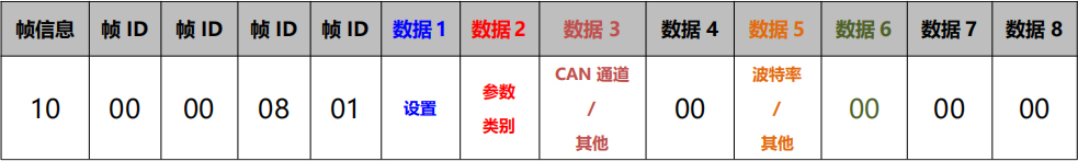 10 00 00 08 01 02 01 01 00 05 00 00 00可設(shè)置CAN1通道為250K