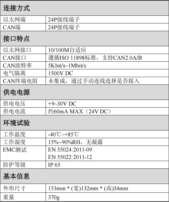 (1)集成2路CAN-bus接口,2路CAN-bus分別隔離,采用端子接線方式;