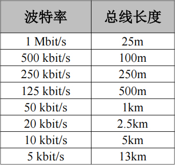 表3.1波特率與最大總線長(zhǎng)度參照表