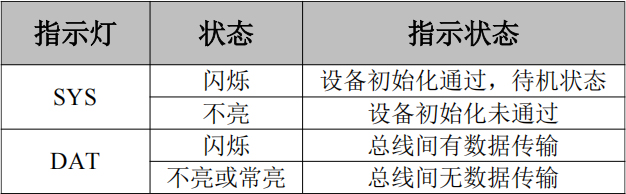 Modbus RTU端與CAN端均連接正常后,當(dāng)總線間有數(shù)據(jù)在傳輸時(shí),數(shù)據(jù)信號(hào)指示燈DAT會(huì)閃爍。