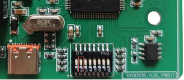 請(qǐng)注意:GCAN-204C模塊采用RS485接口進(jìn)行配置,撥碼開關(guān)旁邊的USB接口為廠家預(yù)留,請(qǐng)不要連接。配置完成后請(qǐng)將2號(hào)撥碼開關(guān)撥回OFF狀態(tài)。