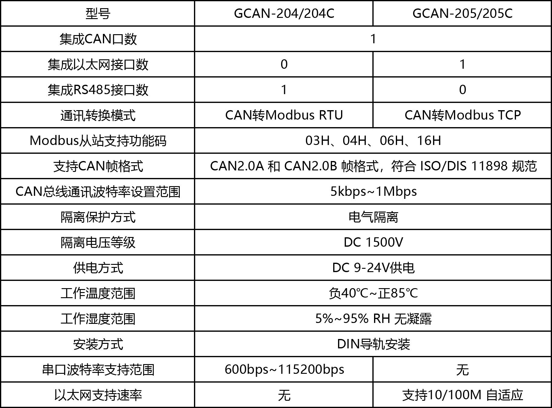 GCAN-204C模塊可將接收到的指定幀ID的CAN數(shù)據(jù),按照設(shè)置好的對(duì)應(yīng)關(guān)系緩存在Modbus RTU的地址表中,等待Modbus指令讀取。