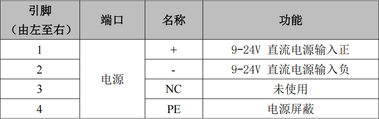GCAN-204C模塊的電源接口由1個(gè)4 Pin插拔式接線端子引出,其接口定義如表2.1所示。