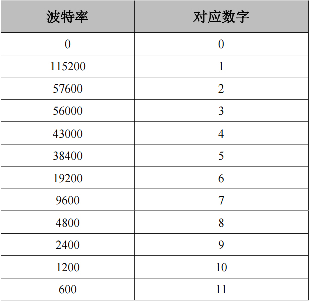 表4.1 RS485波特率與對(duì)應(yīng)數(shù)字對(duì)照表