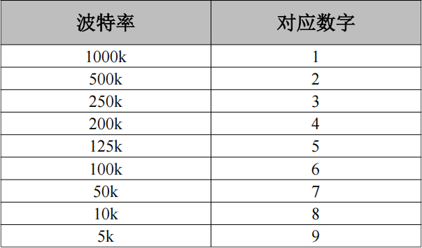 表4.2 CAN波特率與對(duì)應(yīng)數(shù)字對(duì)照表
