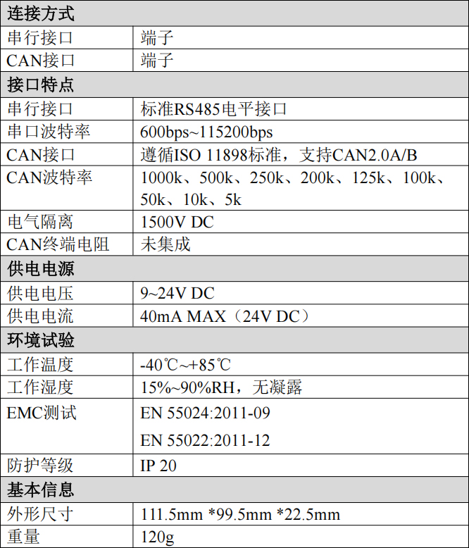 (6)CAN-bus接口采用電氣隔離,隔離模塊絕緣電壓:1500V DC;