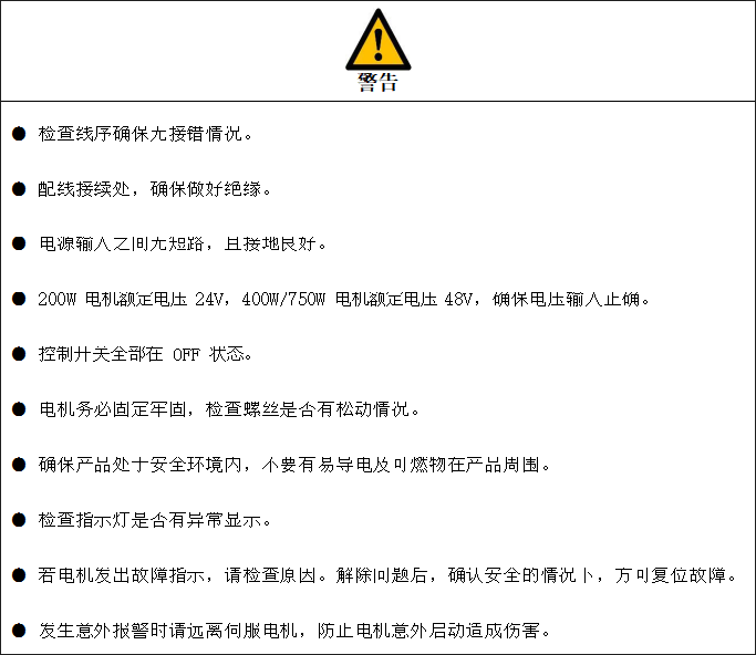 請按照下表逐一檢查,以防止操作不當造成產(chǎn)品及人員的損傷。