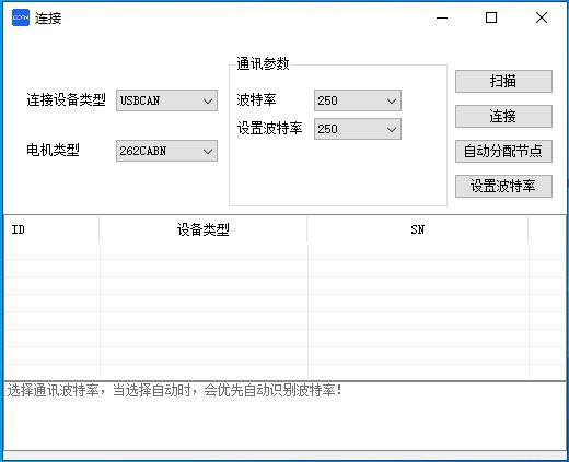 ● 下方設備信息欄:顯示掃描出的當前總線中在線的伺服電機信息。