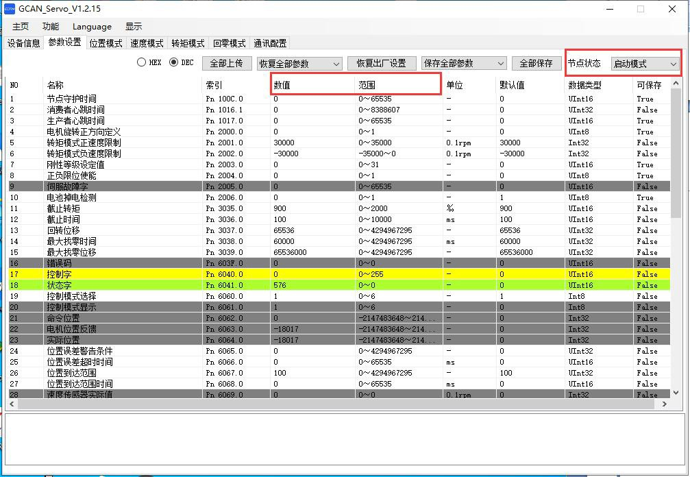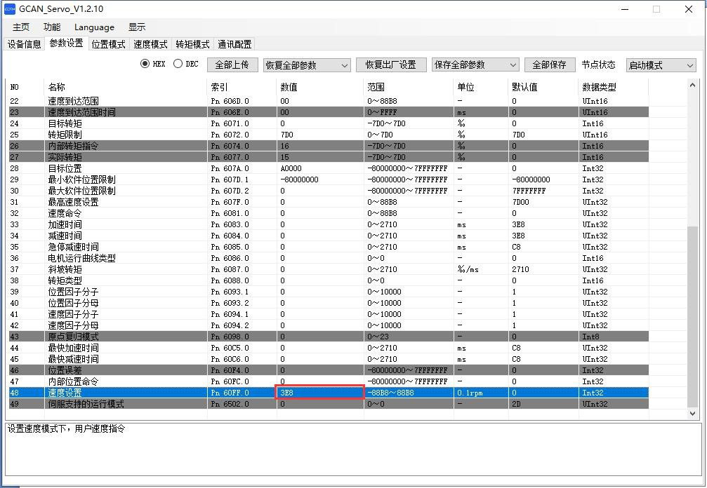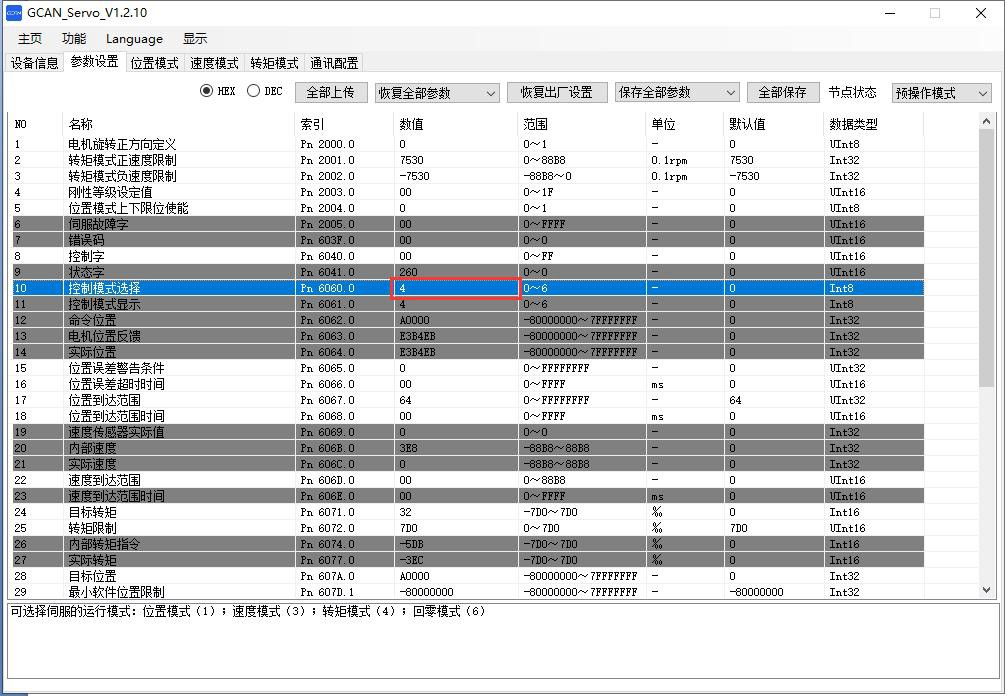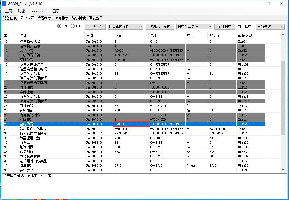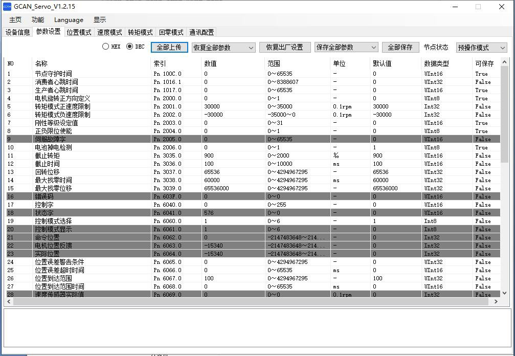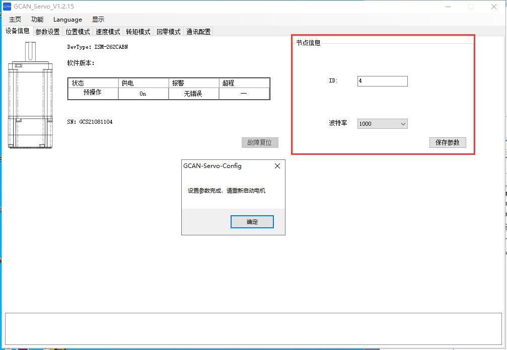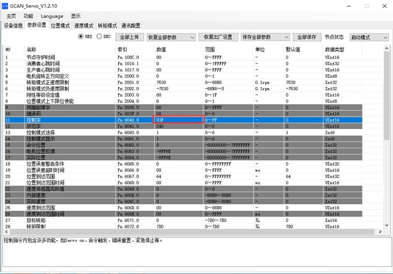 ● 通訊參數(shù):波特率:當前在線的伺服電機CAN總線波特率。