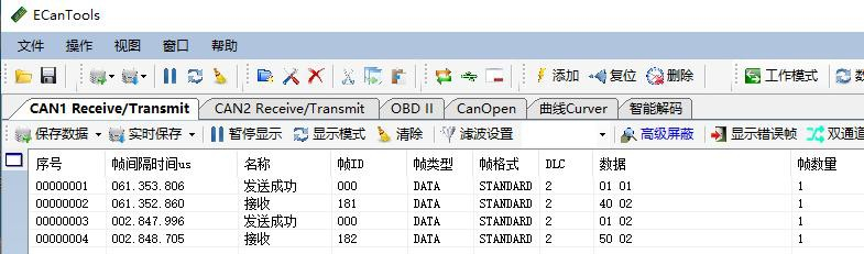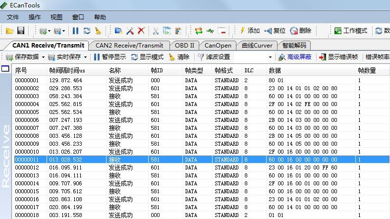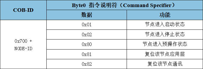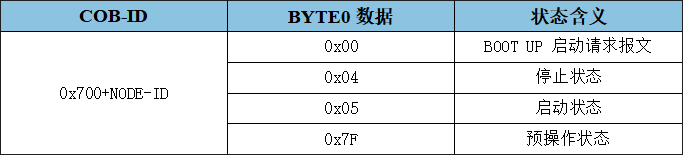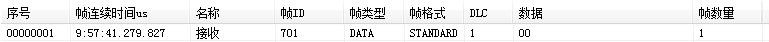 報文:ID:0x000數(shù)據(jù):01 01,設置CANopen進入啟動狀態(tài)。
