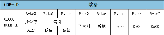 報文:ID:0x601數(shù)據(jù):2F 60 60 00 06 00 00 00,設置0x6060為6,