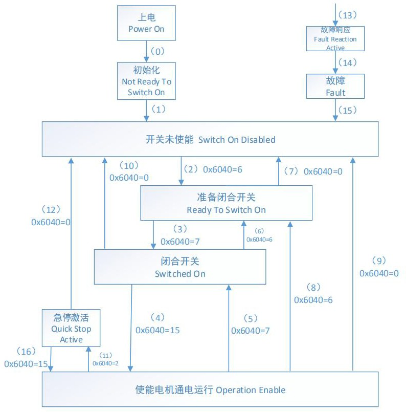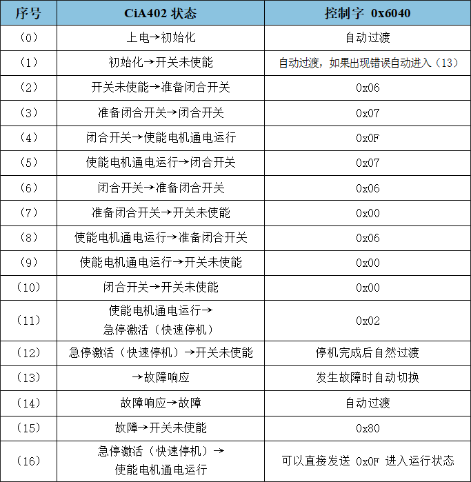 報文:ID:0x601數(shù)據(jù):2B 40 60 00 06 00 00 00,設置伺服狀態(tài)切換到ready to switch on狀態(tài)。