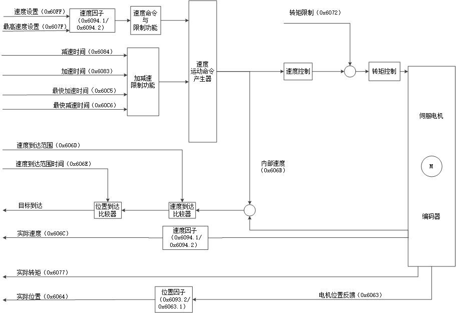 速度模式下,用戶給定速度、加速度、減速度后,伺服驅動器可按此設定規(guī)劃電機的速度曲線,并實現(xiàn)不同速度指令間的平滑切換。