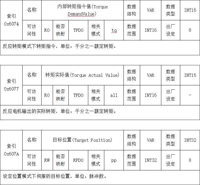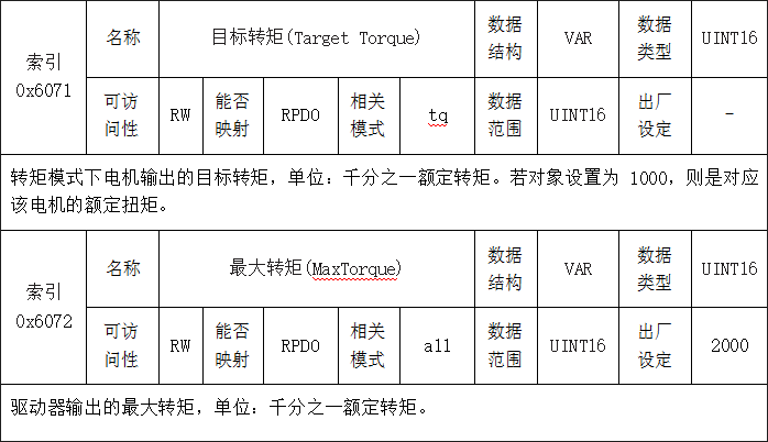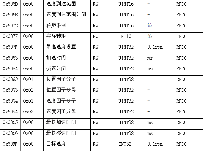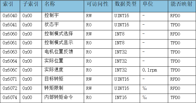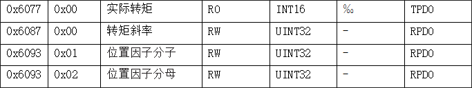 報文:ID:0x601數(shù)據(jù):2B 71 60 00 32 00 00 00,單位‰Tn。即以5%的轉矩運行。