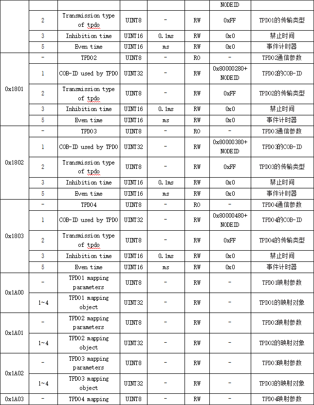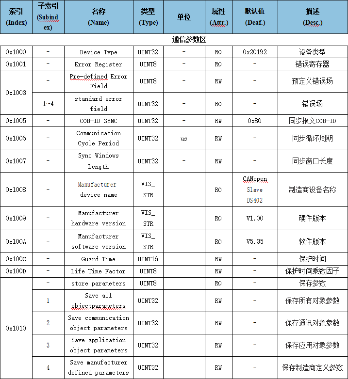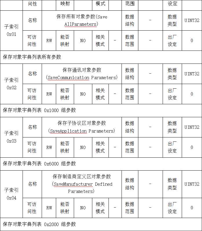 (2)對象字典0x2XXX,0x3XXX,0x5XXX自定義參數(shù)詳細說明