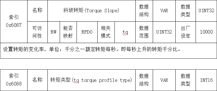 在轉矩模式下,上位機首先指定轉矩命令,然后驅動器的運動命令產(chǎn)生器根據(jù)這些條件規(guī)劃出轉矩斜率。