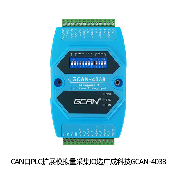 CAN口PLC擴(kuò)展模擬量采集IO選廣成科技GCAN-4038