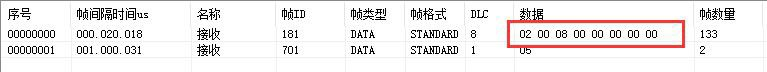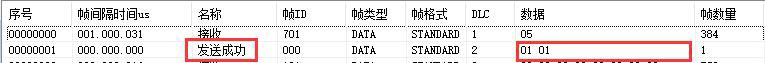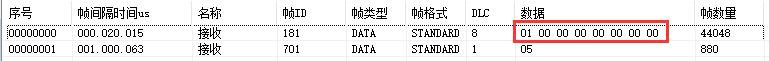 報文:ID:0x000數(shù)據(jù):01 01,設(shè)置模塊為05啟動狀態(tài)。