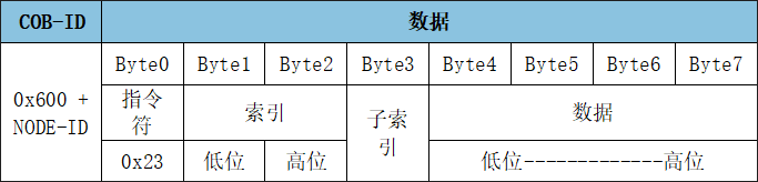 SDO寫入對象字典中數(shù)據(jù)類型的長度為32位參數(shù)命令: