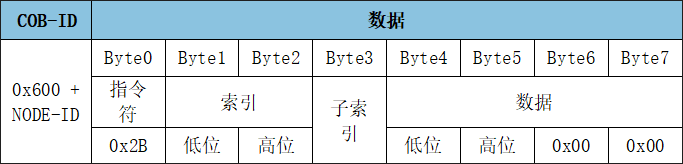 SDO寫入對象字典中數(shù)據(jù)類型的長度為16位參數(shù)命令: