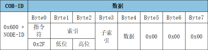 SDO寫入對象字典中數(shù)據(jù)類型的長度為8位參數(shù)命令: