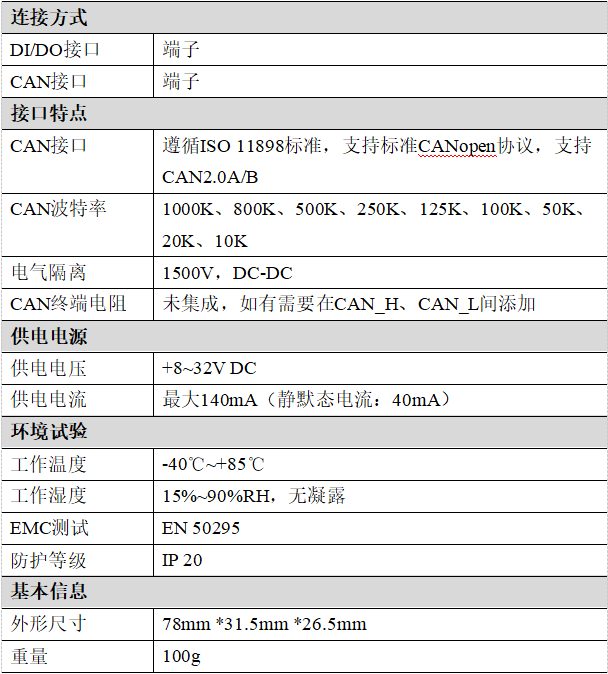 請注意:CAN模式下只有數(shù)據(jù)收發(fā),無法配置相關(guān)參數(shù)。若想重新配置參數(shù),請設(shè)備復位后進入CANopen模式重新配置。