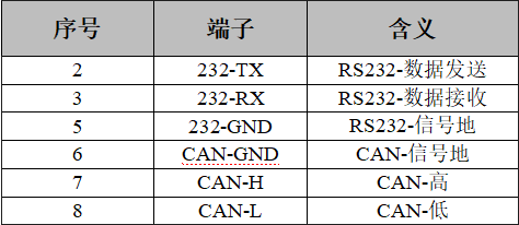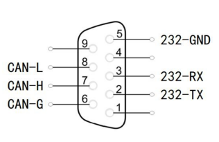 GCAN-PLC-301/302由總線通信模塊與供電模塊組成。RS232、CAN接口的DB9接口,引腳定義如下圖及下表(注:未寫入表中的引腳均為NC)。