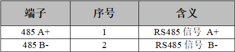 RS485接口的2P端子接口,引腳定義如下圖及下表。